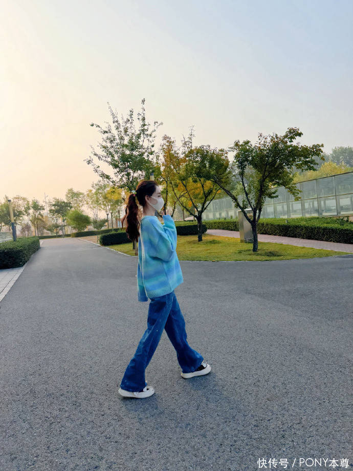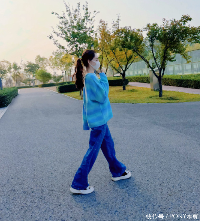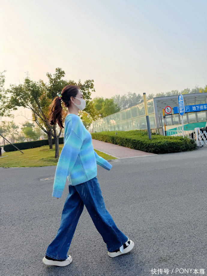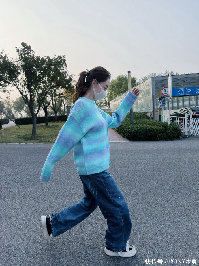 入秋,建议选择圆领套头衫,这样能让脖子显得更加修长!李小冉选择了圆领宽松款套头衫,搭配高扎马尾辫,背部薄的一片,这身材,谁不羡慕!不过到了深秋,还是建议高领衫,那样保暖效果会更好!
